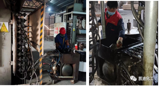 針對以上問題,必須通過有效的清洗手段來清除結(jié)焦、炭化等污垢,從而使溫度達到均勻。在此,推薦使用KD-Q002熱壓板清洗機,并配合KD-L系列熱壓板清洗劑,可有效地解決熱壓板傳熱不均勻的問題,確保除垢率在95%以上。設(shè)備在清洗過程中不發(fā)生任何腐蝕及不良影響,對人體和環(huán)境安全。